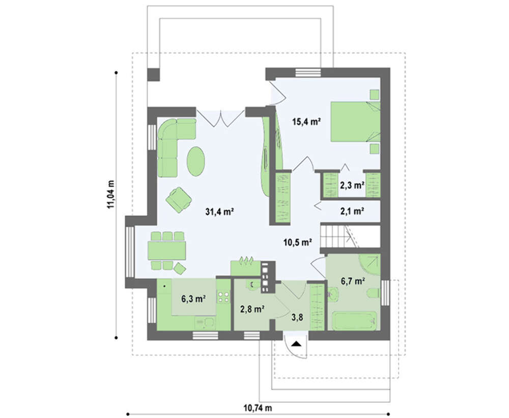 Всі наші типові проекти враховують основні потреби середньостатистичної сім'ї, щоправда, в такому випадку говорити про індивідуальність вашого майбутнього житла не доводиться. Але, щоб будинок виглядав оригінально і повністю відповідав вашим вимогам, ми готові внести зміни в проект.