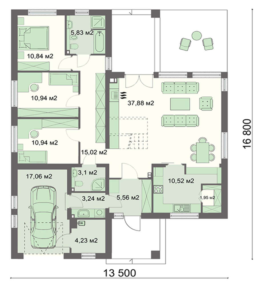 • 4M754 Чарівний одноповерховий будинок з просторою зоною відпочинку