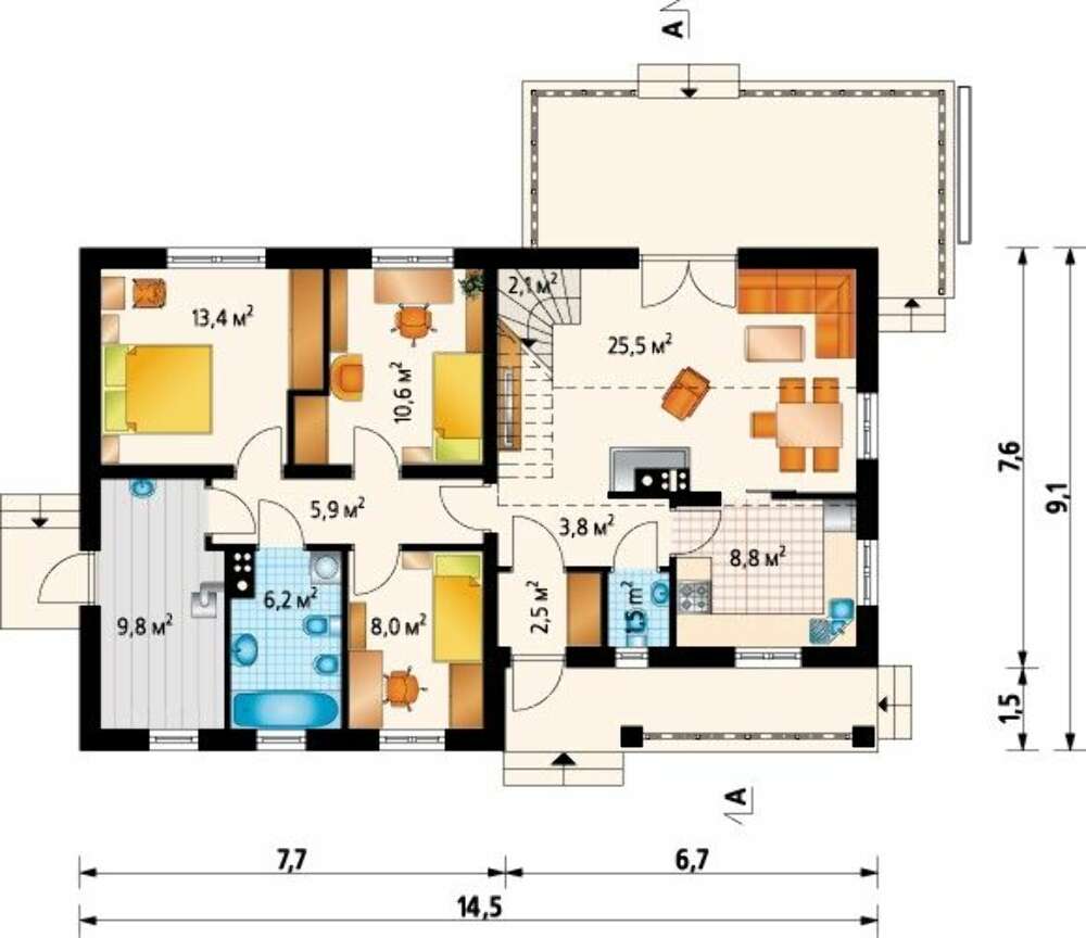 Всі наші типові проекти враховують основні потреби середньостатистичної сім'ї, щоправда, в такому випадку говорити про індивідуальність вашого майбутнього житла не доводиться. Але, щоб будинок виглядав оригінально і повністю відповідав вашим вимогам, ми готові внести зміни в проект.