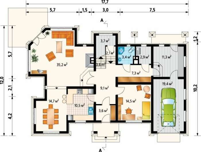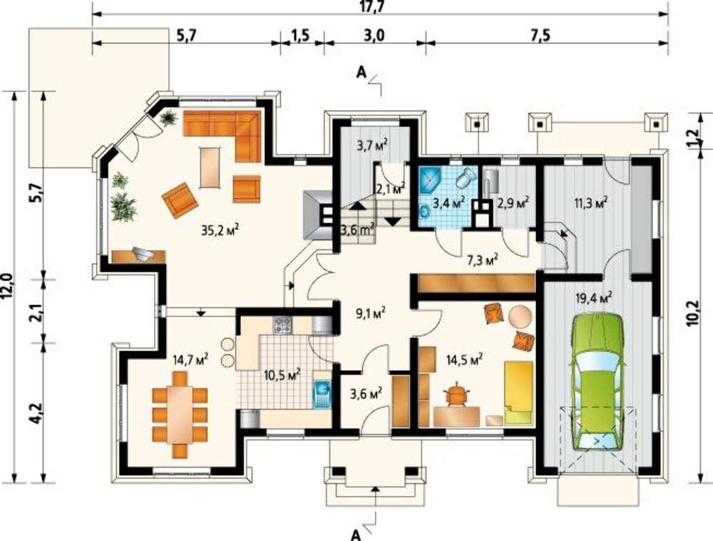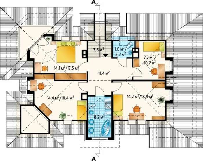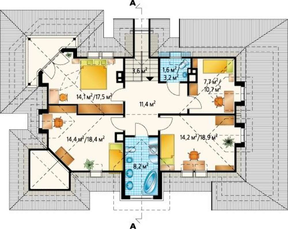 Кут нахилу покрівлі:45°, 31°, 35 °