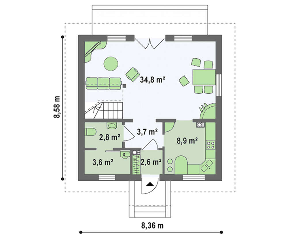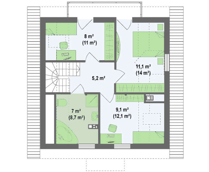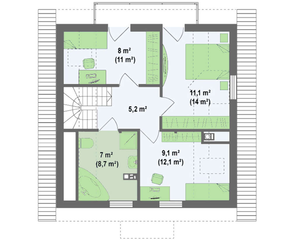 • 4M1616 Проект маленького будинку з мансардою площею 107 m²