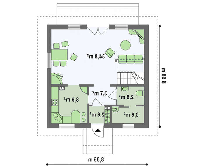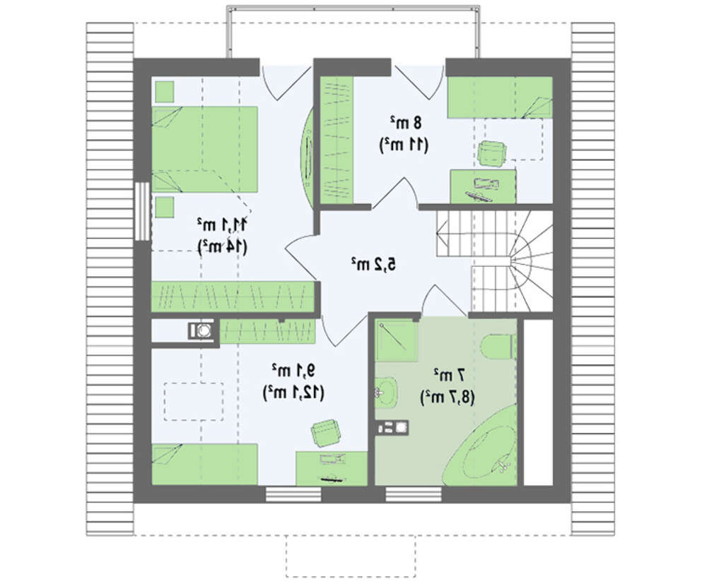 • 4M1616 Проект маленького будинку з мансардою площею 107 m²