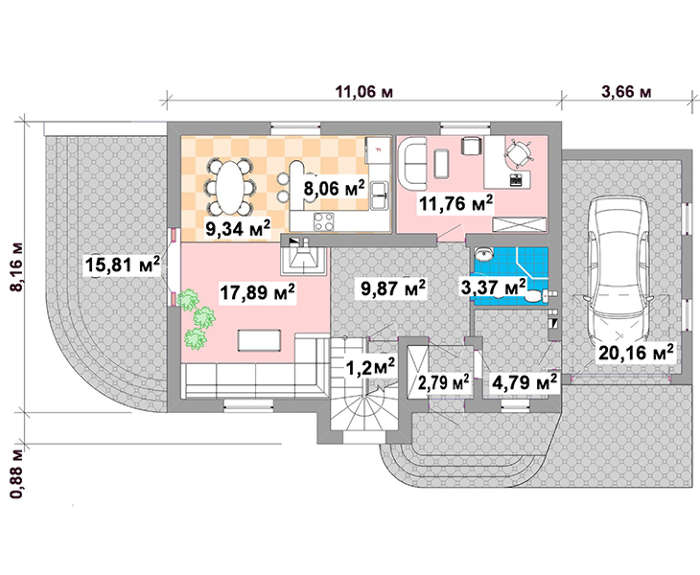 Всі наші типові проекти враховують основні потреби середньостатистичної сім'ї, щоправда, в такому випадку говорити про індивідуальність вашого майбутнього житла не доводиться. Але, щоб будинок виглядав оригінально і повністю відповідав вашим вимогам, ми готові внести зміни в проект.
