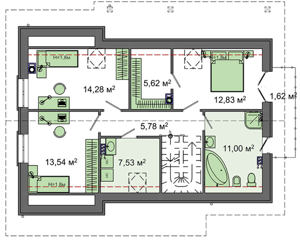 Всі наші типові проекти враховують основні потреби середньостатистичної сім'ї, щоправда, в такому випадку говорити про індивідуальність вашого майбутнього житла не доводиться. Але, щоб будинок виглядав оригінально і повністю відповідав вашим вимогам, ми готові внести зміни в проект.