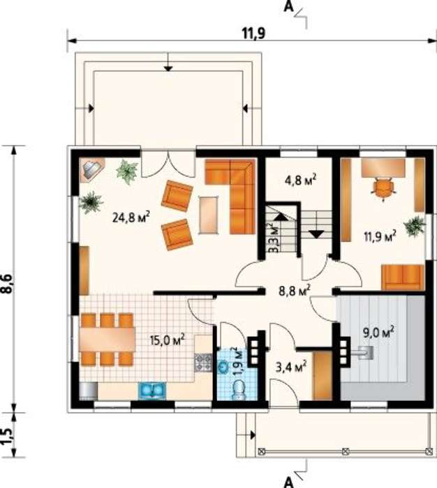 Дах:керамічна черепиця, металочерепиця, цементно-піщана черепиця