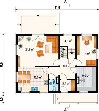 Європейський двоповерховий котедж в теплому жовто-чорному контрасті 4M3694