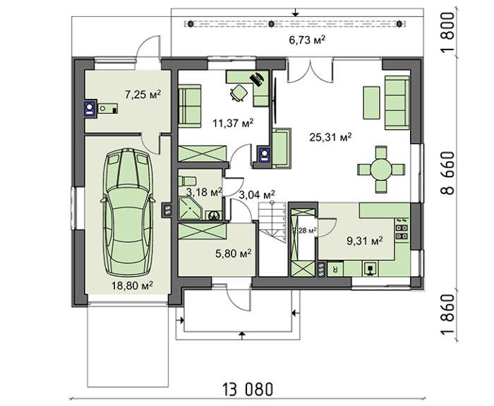 Всі наші типові проекти враховують основні потреби середньостатистичної сім'ї, щоправда, в такому випадку говорити про індивідуальність вашого майбутнього житла не доводиться. Але, щоб будинок виглядав оригінально і повністю відповідав вашим вимогам, ми готові внести зміни в проект.