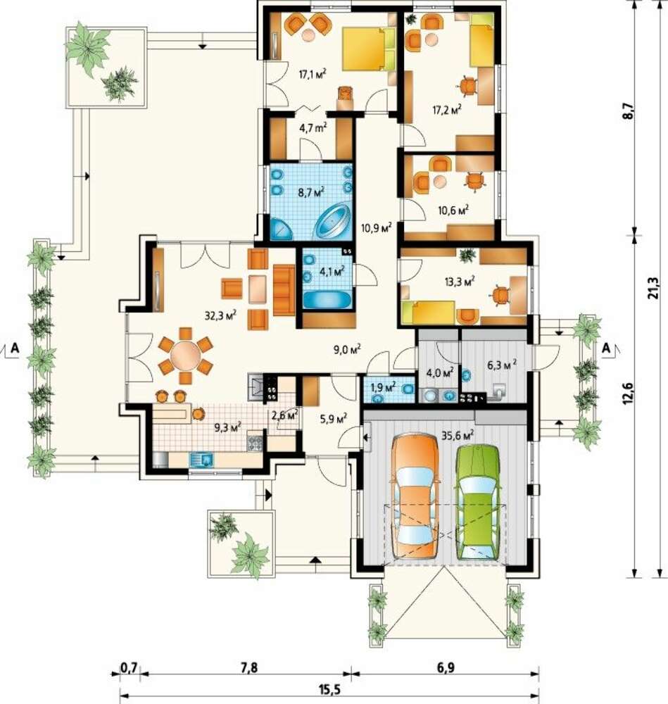 Всі наші типові проекти враховують основні потреби середньостатистичної сім'ї, щоправда, в такому випадку говорити про індивідуальність вашого майбутнього житла не доводиться. Але, щоб будинок виглядав оригінально і повністю відповідав вашим вимогам, ми готові внести зміни в проект.