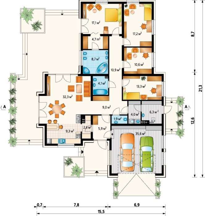 | Дах: | керамічна черепиця, металочерепиця, цементно-піщана черепиця |