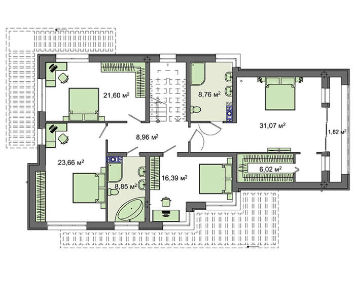 Всі наші типові проекти враховують основні потреби середньостатистичної сім'ї, щоправда, в такому випадку говорити про індивідуальність вашого майбутнього житла не доводиться. Але, щоб будинок виглядав оригінально і повністю відповідав вашим вимогам, ми готові внести зміни в проект.