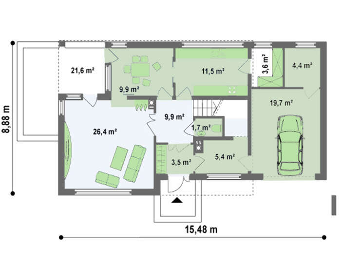 • 4M155 Готовий проект двоповерхового будинку з гаражем площею 164 кв.м.