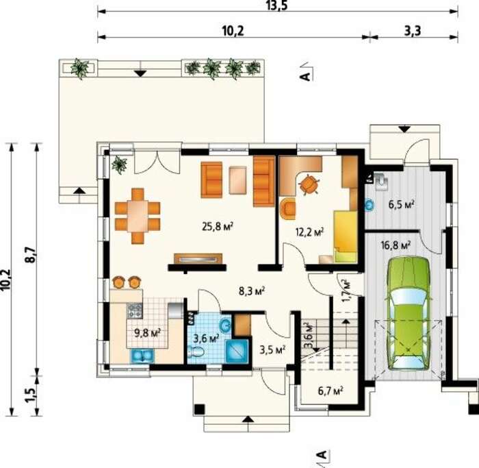 • 4M3460 Компактний котедж з гаражем і шістьма спальнями