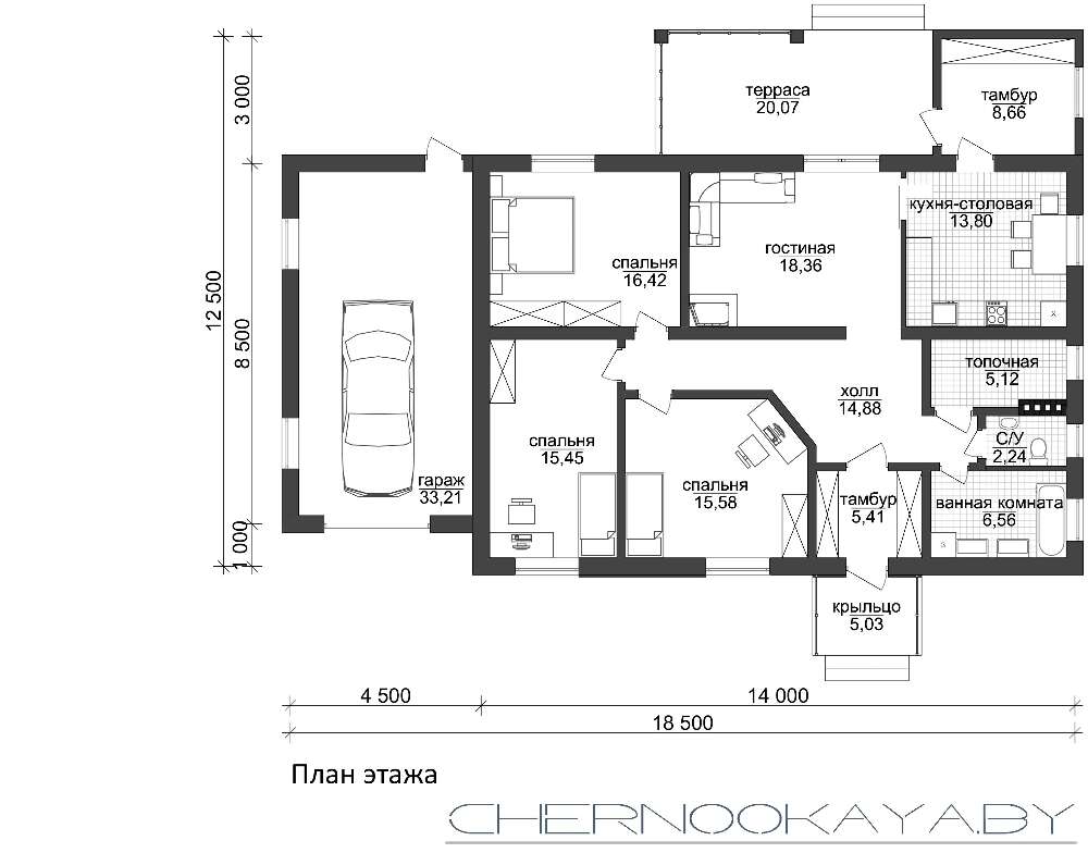 • 4M050 Компактний одноповерховий житловий будинок з гаражем