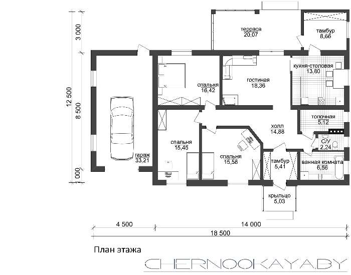 Компактний одноповерховий житловий будинок з гаражем 4M050