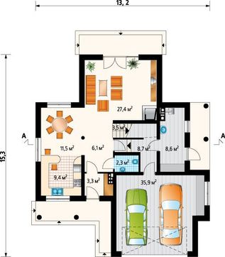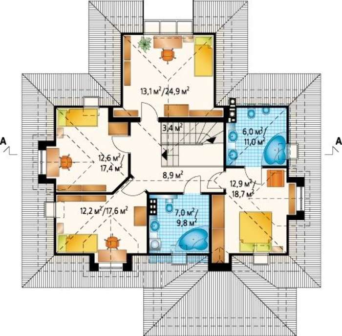 | Кут нахилу покрівлі: | 39°, 30 ° |