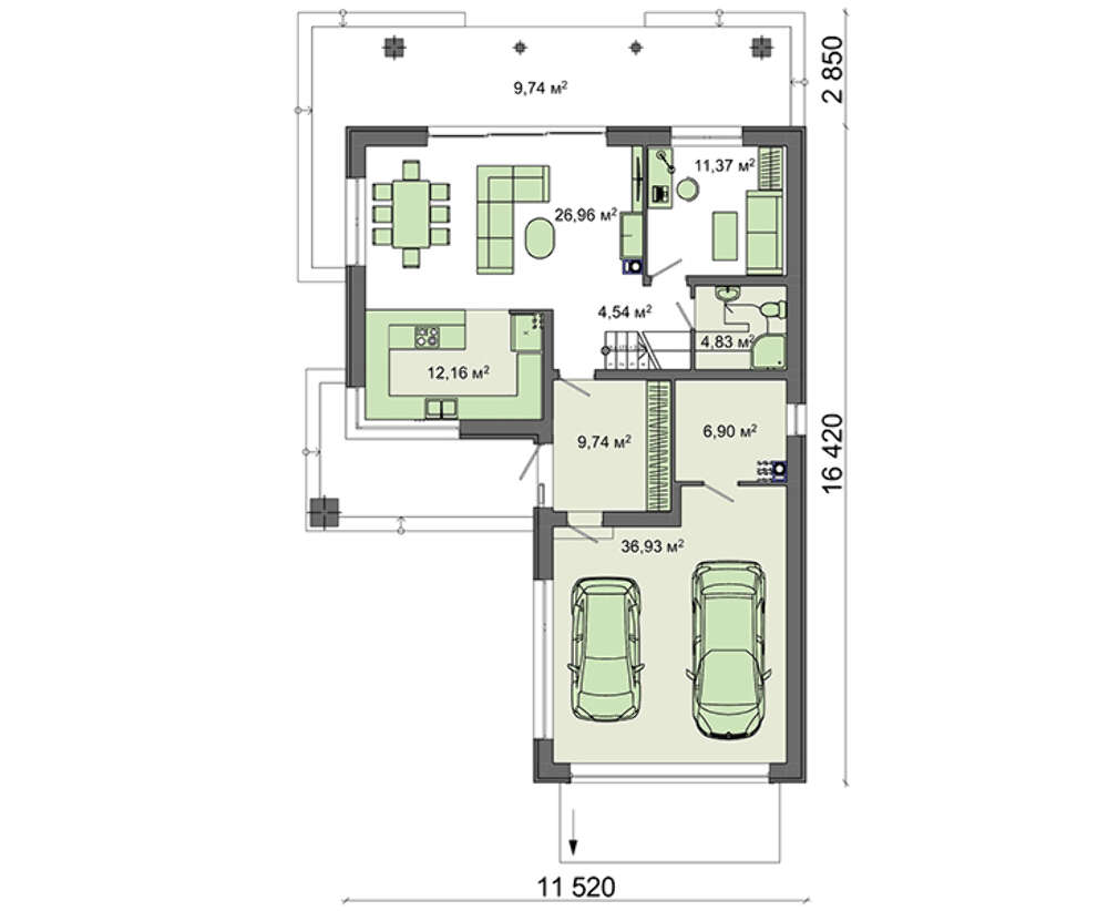 • 4M748 Креслення котеджу з мансардою та великим гаражем