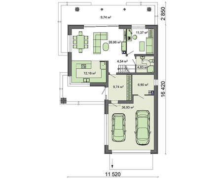 Креслення котеджу з мансардою та великим гаражем 4M748