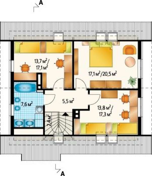 Невеликий заміський котедж з мансардним поверхом та терасою 4M3235