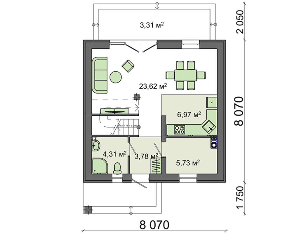 Всі наші типові проекти враховують основні потреби середньостатистичної сім'ї, щоправда, в такому випадку говорити про індивідуальність вашого майбутнього житла не доводиться. Але, щоб будинок виглядав оригінально і повністю відповідав вашим вимогам, ми готові внести зміни в проект.