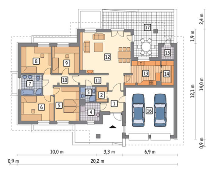 • 4M6132 Одноповерховий будинок на 5 спалень