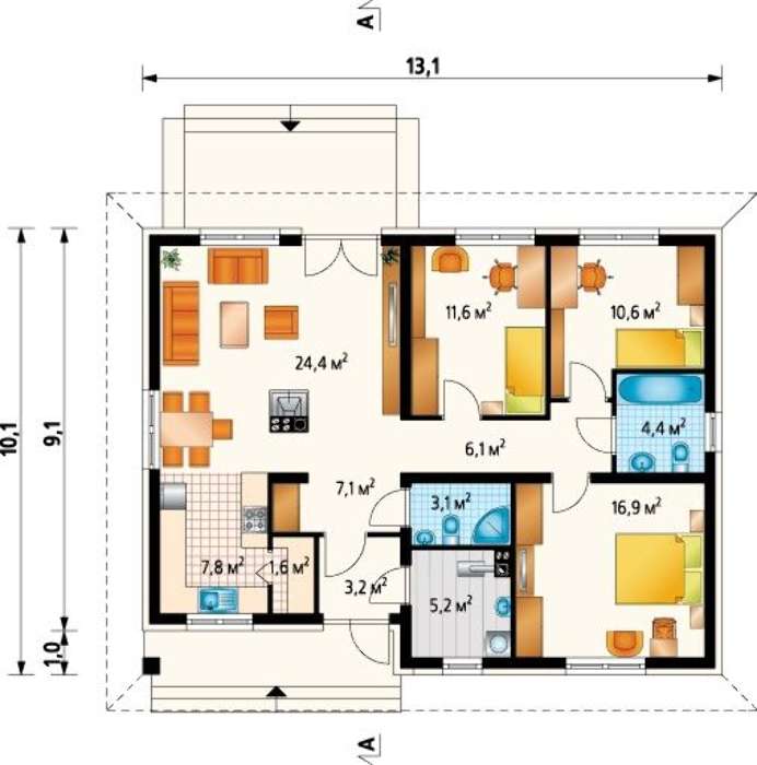 • 4M7120 Одноповерховий будинок площею 100 квадратів