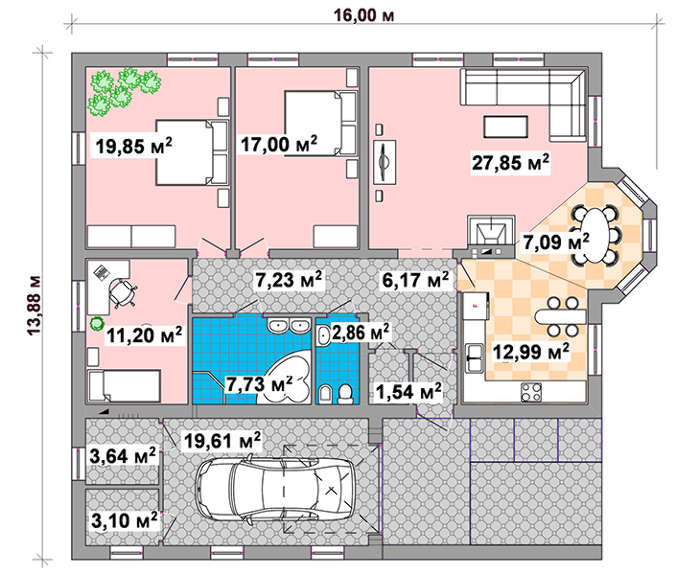Всі наші типові проекти враховують основні потреби середньостатистичної сім'ї, щоправда, в такому випадку говорити про індивідуальність вашого майбутнього житла не доводиться. Але, щоб будинок виглядав оригінально і повністю відповідав вашим вимогам, ми готові внести зміни в проект.