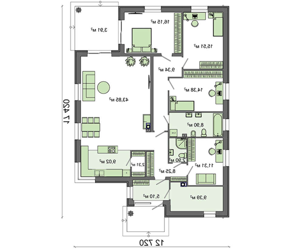 Всі наші типові проекти враховують основні потреби середньостатистичної сім'ї, щоправда, в такому випадку говорити про індивідуальність вашого майбутнього житла не доводиться. Але, щоб будинок виглядав оригінально і повністю відповідав вашим вимогам, ми готові внести зміни в проект.