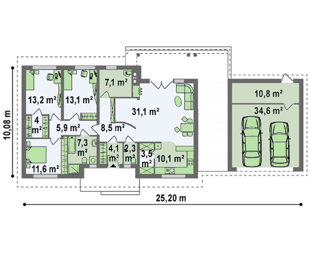 Всі наші типові проекти враховують основні потреби середньостатистичної сім'ї, щоправда, в такому випадку говорити про індивідуальність вашого майбутнього житла не доводиться. Але, щоб будинок виглядав оригінально і повністю відповідав вашим вимогам, ми готові внести зміни в проект.