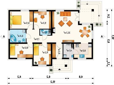 Одноповерховий житловий будинок з трьома спальнями і кабінетом 4M3561