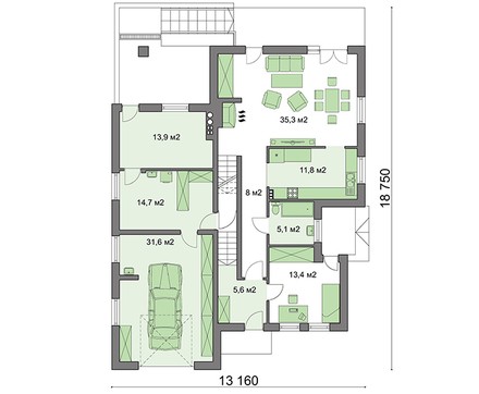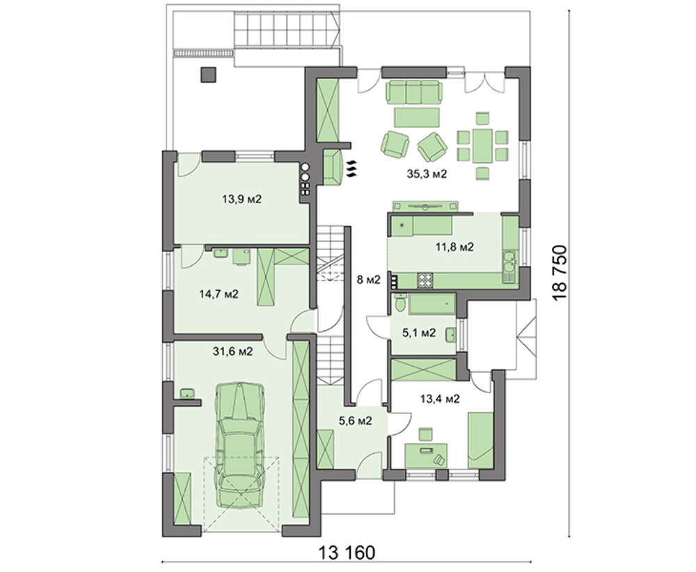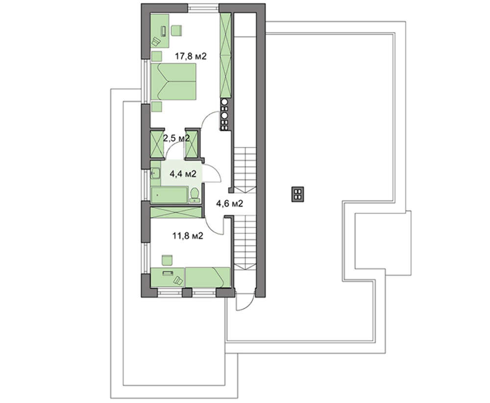 • 4M531 Оригінальний проект житлового будинку площею 180 кв. м в стилі мінімалізму з величезними терасами