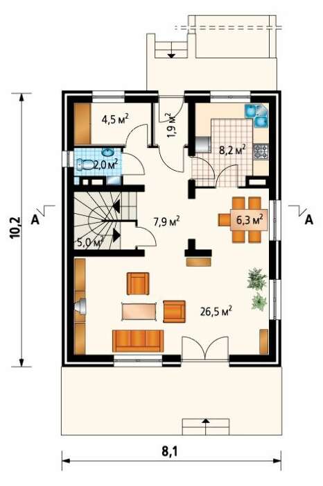 План будинку в європейському стилі житловою площею 110 кв. м 4M3560