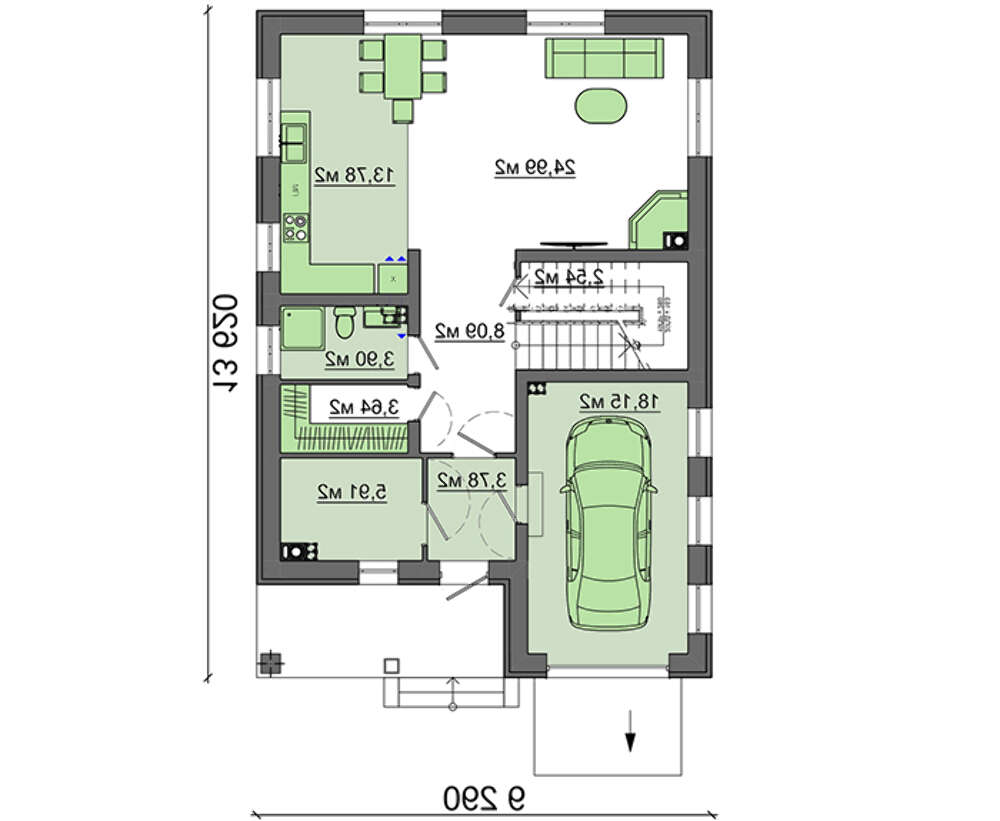 • 4M1418 План двоповерхового котеджу площею 150 кв. м з вбудованим гаражем