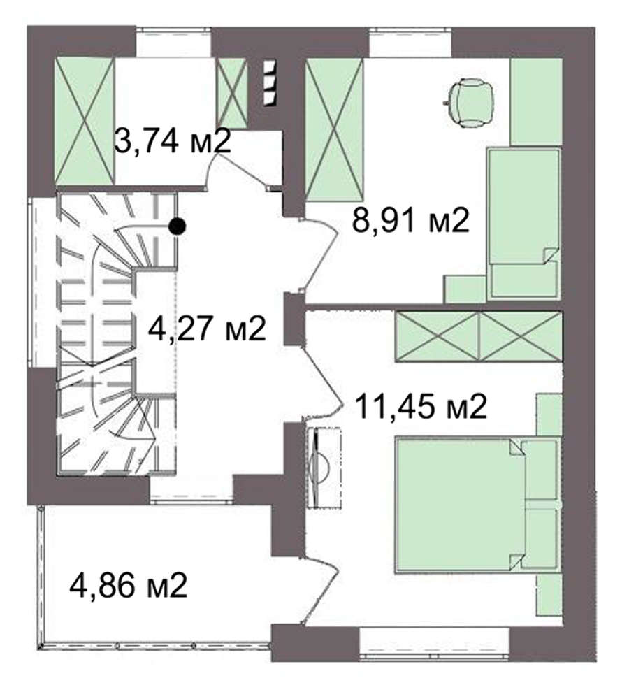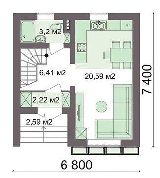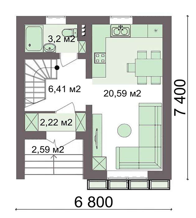• 4M5121 План невеликого заміського будинку площею 60м2