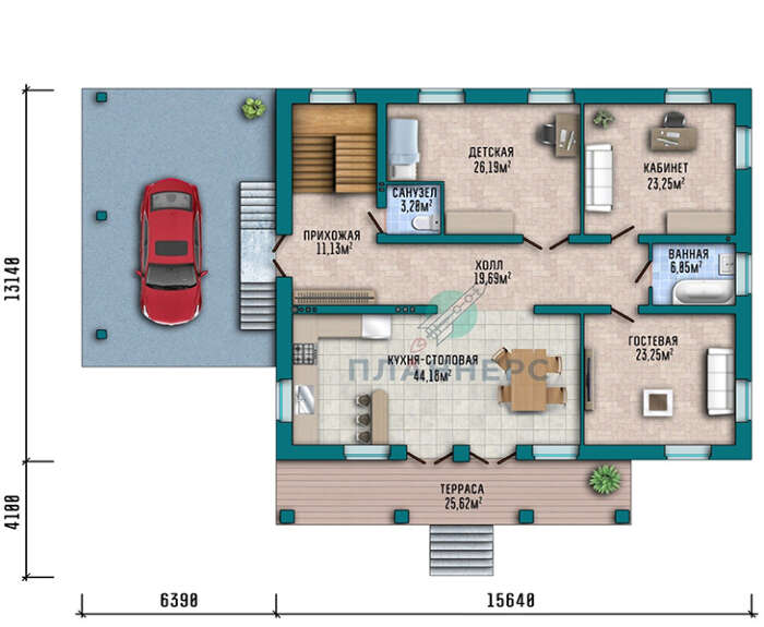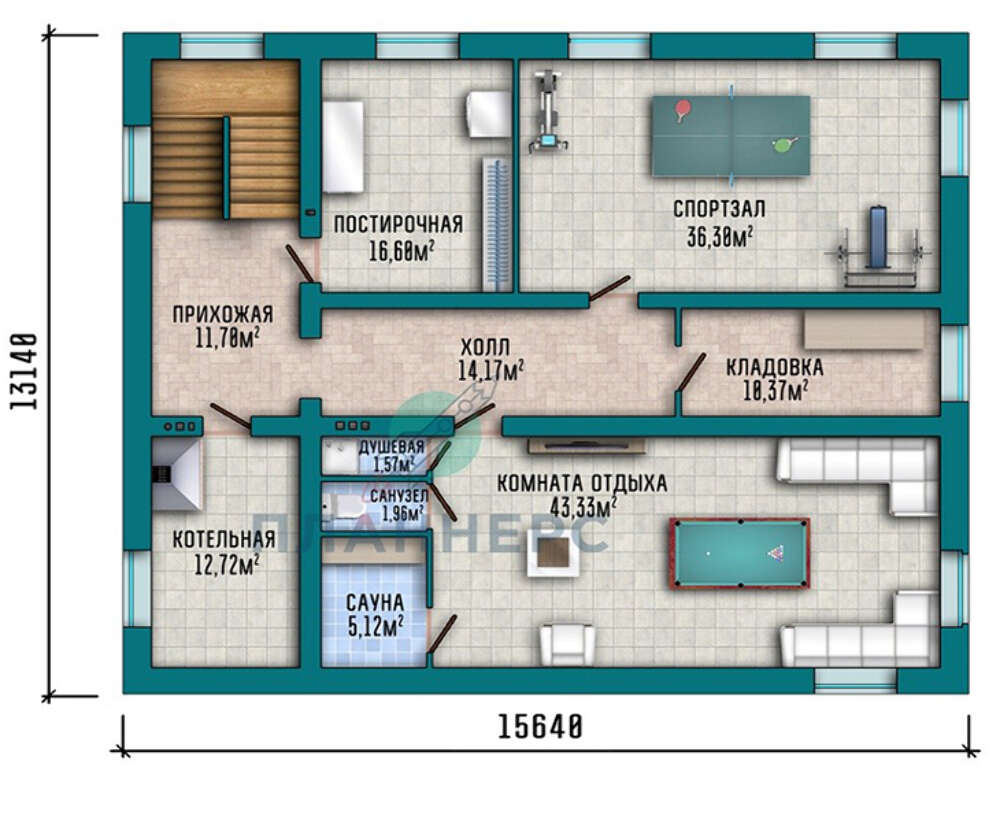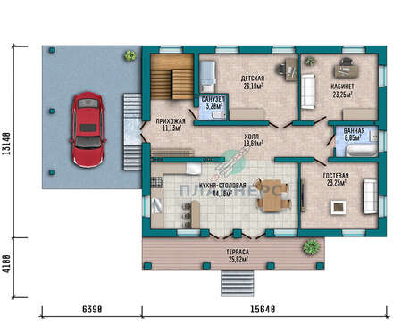 План величавого особняка площею 431 кв. м з цокольним поверхом та капітальним навісом для автомобіля 4M1435