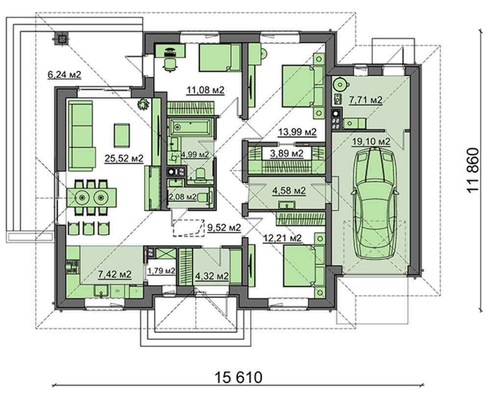 Всі наші типові проекти враховують основні потреби середньостатистичної сім'ї, щоправда, в такому випадку говорити про індивідуальність вашого майбутнього житла не доводиться. Але, щоб будинок виглядав оригінально і повністю відповідав вашим вимогам, ми готові внести зміни в проект.