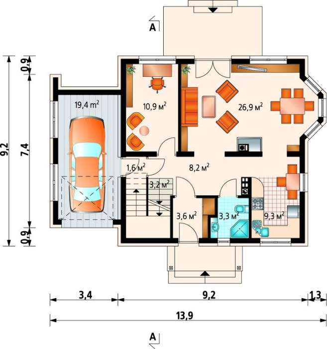 • 4M3097m Приємний проект невеликої садиби 180 m²