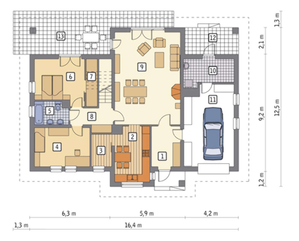 Всі наші типові проекти враховують основні потреби середньостатистичної сім'ї, щоправда, в такому випадку говорити про індивідуальність вашого майбутнього житла не доводиться. Але, щоб будинок виглядав оригінально і повністю відповідав вашим вимогам, ми готові внести зміни в проект.