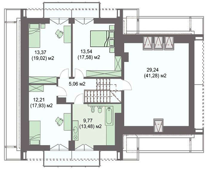 Всі наші типові проекти враховують основні потреби середньостатистичної сім'ї, щоправда, в такому випадку говорити про індивідуальність вашого майбутнього житла не доводиться. Але, щоб будинок виглядав оригінально і повністю відповідав вашим вимогам, ми готові внести зміни в проект.