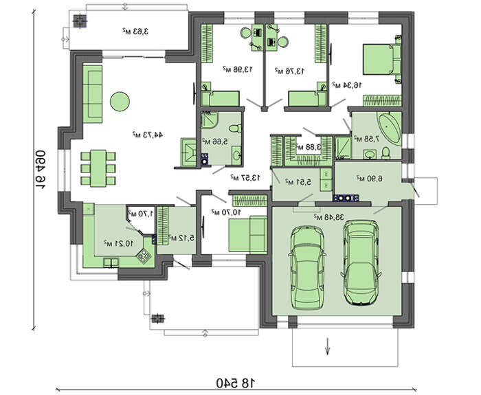 • 4M1504 Проект 1 поверхового будинку з гаражем для 2 авто загальною площею 201 кв.м.