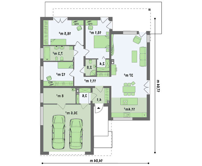 Проект будинку хай-тек з гаражем на дві машини 4M586a