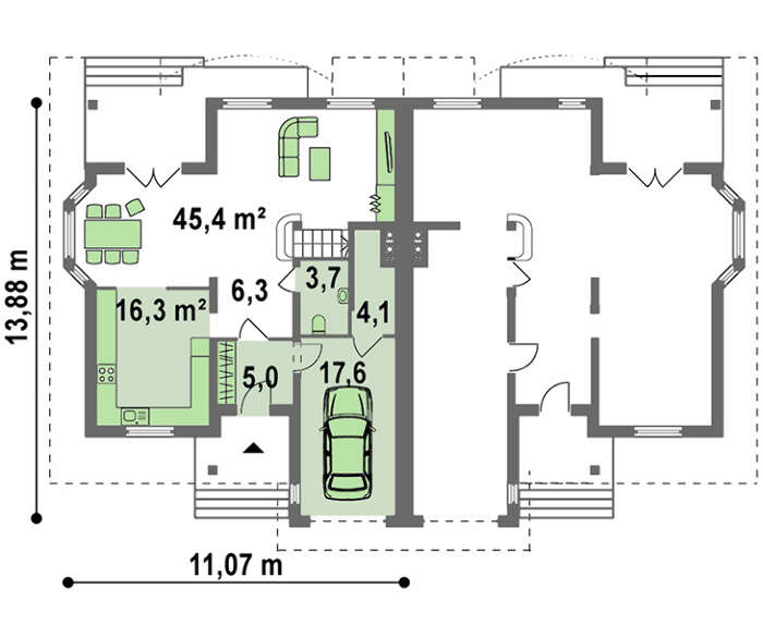 • 4M542 Проект будинку на дві сім'ї з гаражем і горищем