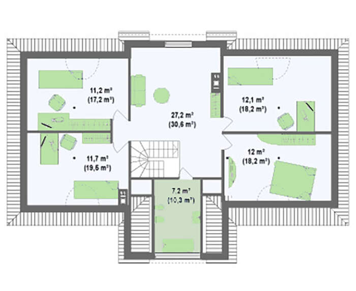 Внутрішнє планування спроектоване для великої родини. На двох поверхах розміщено сім спалень і три санвузли, що дозволяє комфортно розміщувати до 10 осіб - ідеально для багатопоколінних сімей або частих гостей.