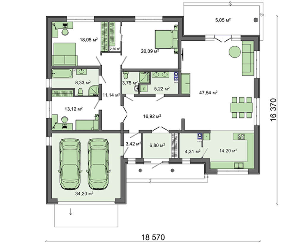 Всі наші типові проекти враховують основні потреби середньостатистичної сім'ї, щоправда, в такому випадку говорити про індивідуальність вашого майбутнього житла не доводиться. Але, щоб будинок виглядав оригінально і повністю відповідав вашим вимогам, ми готові внести зміни в проект.