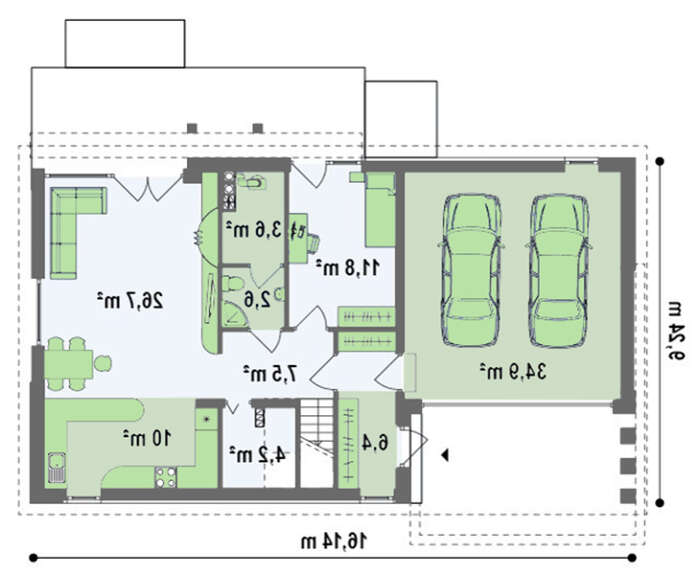 • 4M246 Проект будинку з гаражем для двох авто 9 на 16