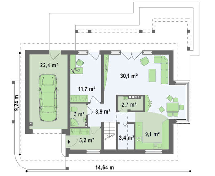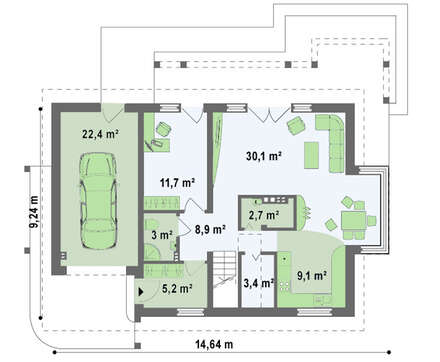 • 4M240 Проект будинку з гаражем, скляним еркером і балконами