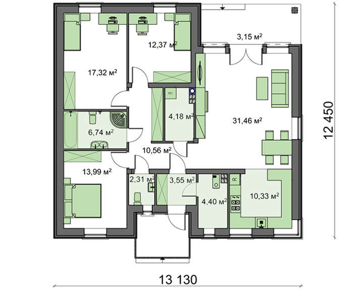 Всі наші типові проекти враховують основні потреби середньостатистичної сім'ї, щоправда, в такому випадку говорити про індивідуальність вашого майбутнього житла не доводиться. Але, щоб будинок виглядав оригінально і повністю відповідав вашим вимогам, ми готові внести зміни в проект.
