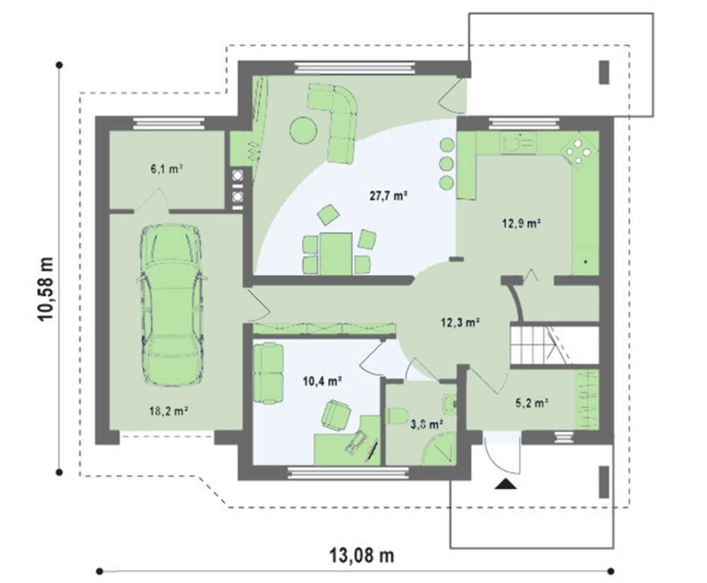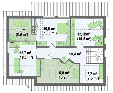 • 4M472 Проект будинку з мансардою і додатковою спальнею на першому поверсі