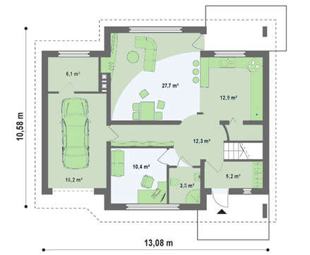 Проект будинку з мансардою і додатковою спальнею на першому поверсі