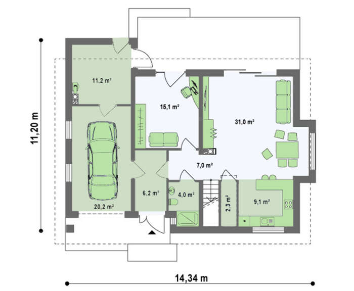 Всі наші типові проекти враховують основні потреби середньостатистичної сім'ї, щоправда, в такому випадку говорити про індивідуальність вашого майбутнього житла не доводиться. Але, щоб будинок виглядав оригінально і повністю відповідав вашим вимогам, ми готові внести зміни в проект.