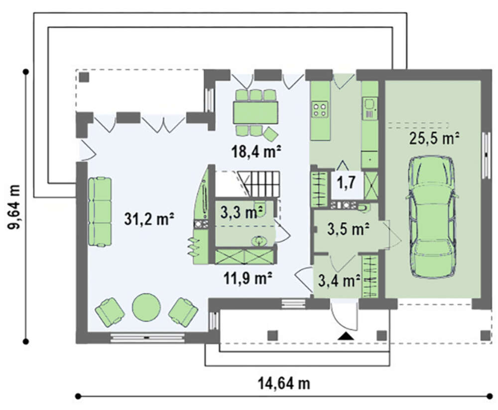 Всі наші типові проекти враховують основні потреби середньостатистичної сім'ї, щоправда, в такому випадку говорити про індивідуальність вашого майбутнього житла не доводиться. Але, щоб будинок виглядав оригінально і повністю відповідав вашим вимогам, ми готові внести зміни в проект.